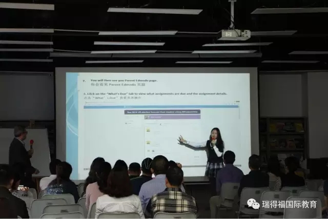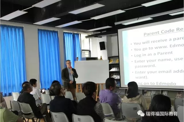 教授计算机和商学的外教Brian给家长们详细介绍了SMS、Edmodo系统的使用方法,10年级的Gloria张许千惠提供了精彩的全程翻译。