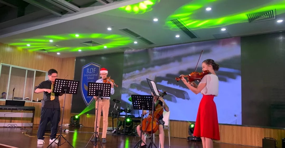 ↓ 由学术副校长、哈佛硕士Mr.Dalal携手赵泓洋Vincent、Emily Anderson、Linda Anderson带来的提琴合奏《Vivaldi's four seasons-winter》,琴声悠扬,曲意婉转,令人仿佛置身如梦如幻的冰雪世界。